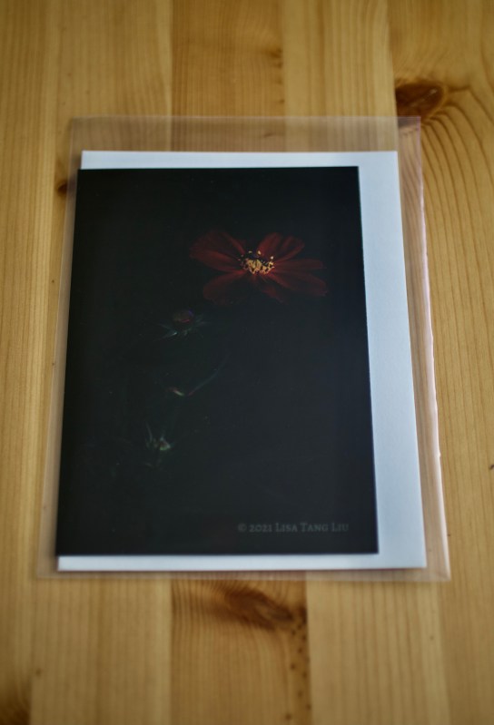 Per my friend Carmel’s request, I finally made a blank notecard to sell. This is an image from my “Red in Nature” series, of a red cosmo with a sweat bee. After honing out some issues, my Etsy shop is finally open. Here’s the link: